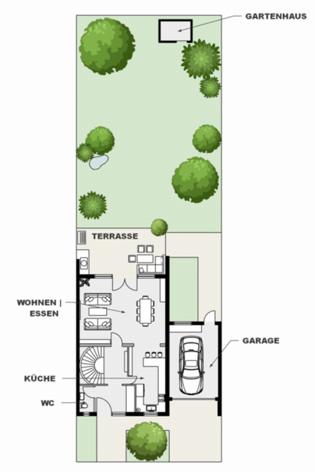 Ein besonderes Plus: Der Garten ist auch direkt über die Garage erreichbar – praktisch und komfortabel zugleich.