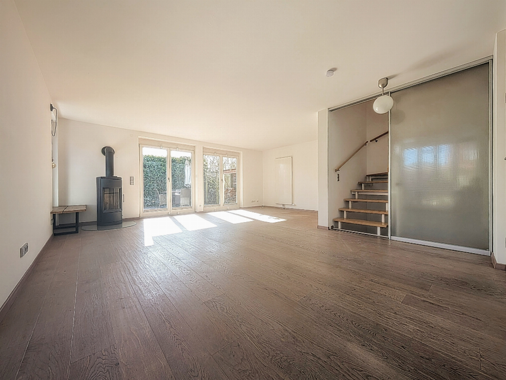 Der Wohn- und Essbereich wirkt weitläufig und hell. Große Fensterflächen lassen reichlich Tageslicht herein und eröffnen den Blick ins Grüne. Hier finden gemeinsame Mahlzeiten, fröhliche Nachmittage mit den Kindern oder entspannte Abende vor dem Kamin ihren natürlichen Platz. Die Verbindung zwischen Innenraum und Garten verleiht dem Haus eine besondere Offenheit und schafft ein harmonisches Wohngefühl.