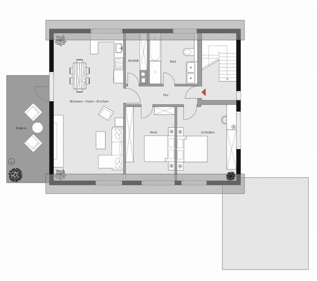 Der sonnige Westbalkon erweitert den Wohnraum auf besonders angenehme Weise und lädt dazu ein, den Tag entspannt im Freien ausklingen zu lassen. Ob ein Kaffee am Nachmittag oder ein Glas Wein in der Abendsonne – hier entsteht ein schöner Rückzugsort mit viel Atmosphäre.